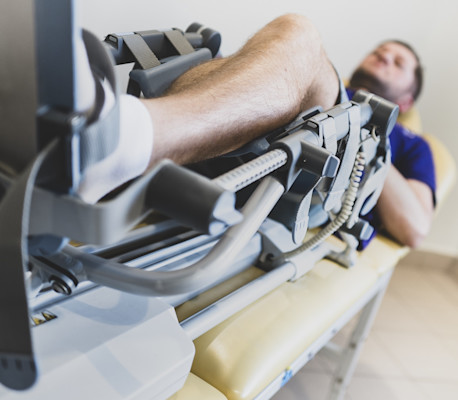 Szyna CPM – to szyna do ciągłego ruchu biernego, która przywraca funkcje motoryczne poprzez symulację naturalnego ruchu kończyny w kontrolowanym zakresie. Jest bardzo istotnym elementem rehabilitacji zarówno pooperacyjnej, jak i pourazowej, gdyż gwarantuje bezpieczne ćwiczenia, które rozpoczyna się już w pierwszej dobie. Terapia powoduje redukuję bólu pooperacyjnego i minimalizuje powstanie obrzęku, a dzięki wczesnemu jej stosowaniu można zapobiec zesztywnieniu stawów oraz osłabieniu mięśni, co zdecydowanie przyspiesza powrót pacjenta do sprawności. Urządzenie BTL-CPMotion K Pro, którym dysponujemy można wykorzystać do terapii wszystkich trzech stawów kończyny dolnej. Posiada wbudowane 13 gotowych programów terapeutycznych i jest sterowane pilotem z kolorowym ekranem dotykowym, na którym można precyzyjnie ustawić: zakres i prędkość ruchu, a także czas trwania ruchu i przerw. W czasie trwania terapii można regulować wcześniejsze ustawienia, bez konieczności przerywania ćwiczenia.